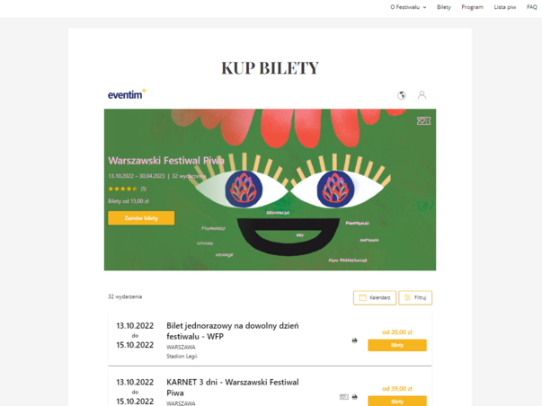 All the events on the website are presented in a transparent manner and facilitate the customer’s purchase; they are also an information centre about the event. Each event card includes a description , selected graphic presentation, line-up, artist biography, schedules, photo gallery or music videos.