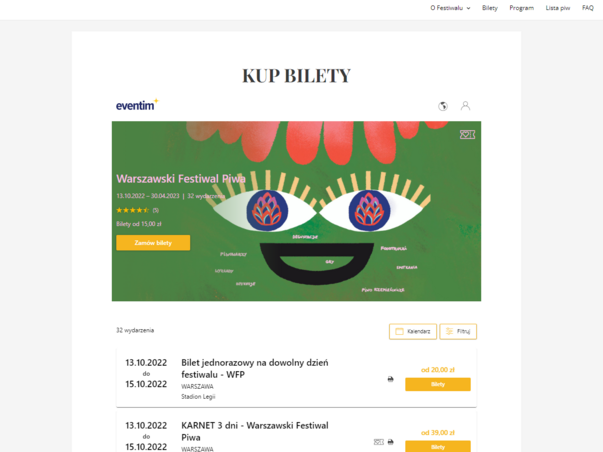 Wszystkie wydarzenia na stronie prezentowane są w sposób przejrzysty i ułatwiający klientowi zakup są również centrum informacji o wydarzeniu. Każda karta wydarzenia zawiera opis, wybraną prezentację graficzną, line-up, biografię artystów, harmonogramy, galerię zdjęć lub teledyski.